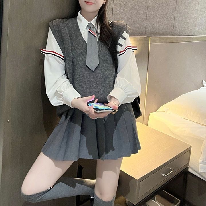 セット(ニットベスト+長袖シャツ+プリーツスカート+ネクタイ)