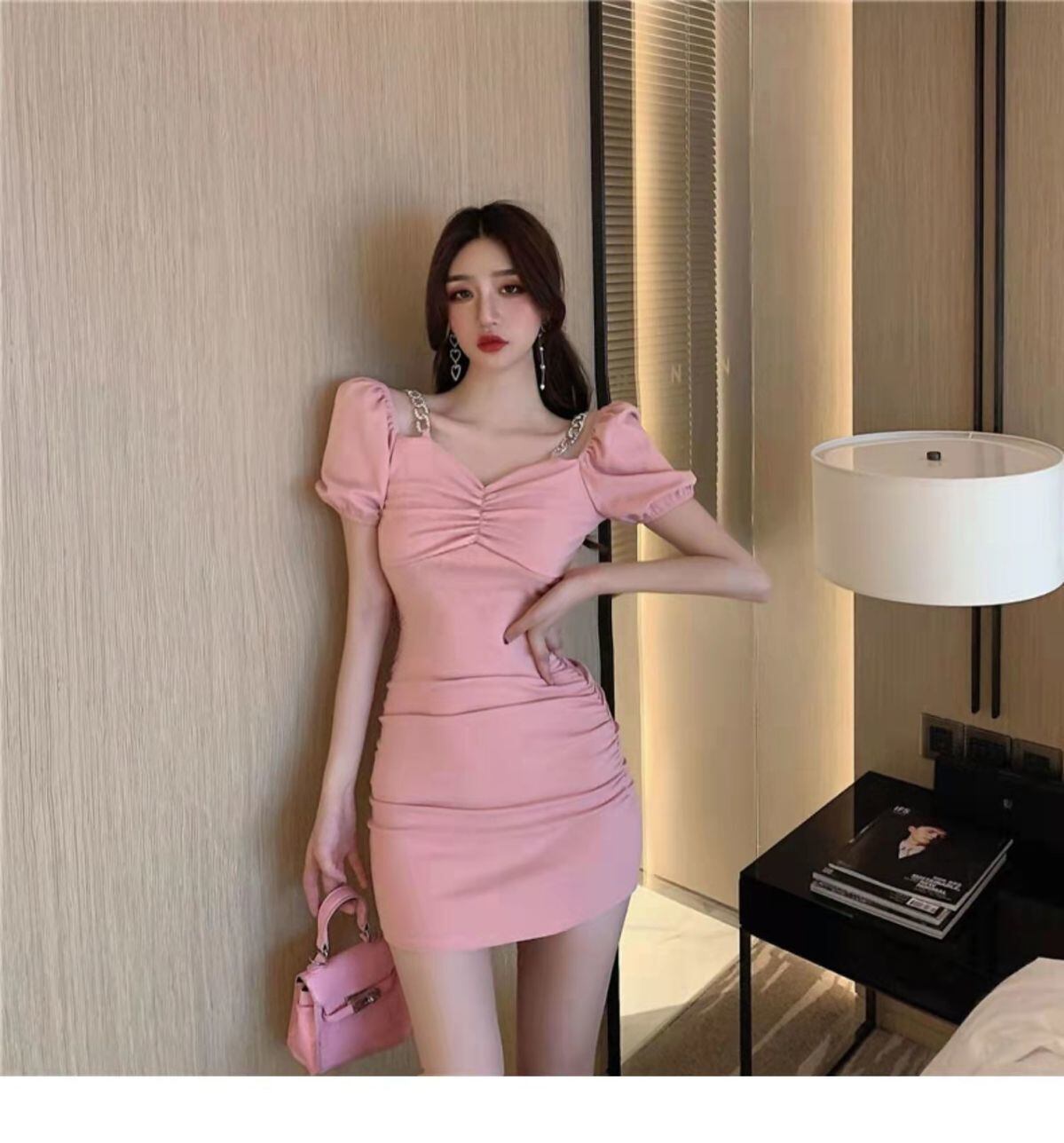 [韓国っぽワンピース] 高品質 無地 オープンショルダー スリムワンピース