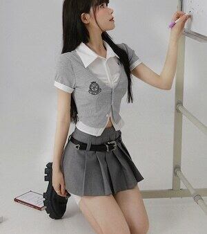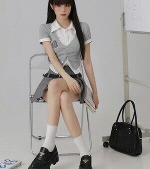 韓国制服セット/ベスト(グレー)&プリーツスカート(グレー)